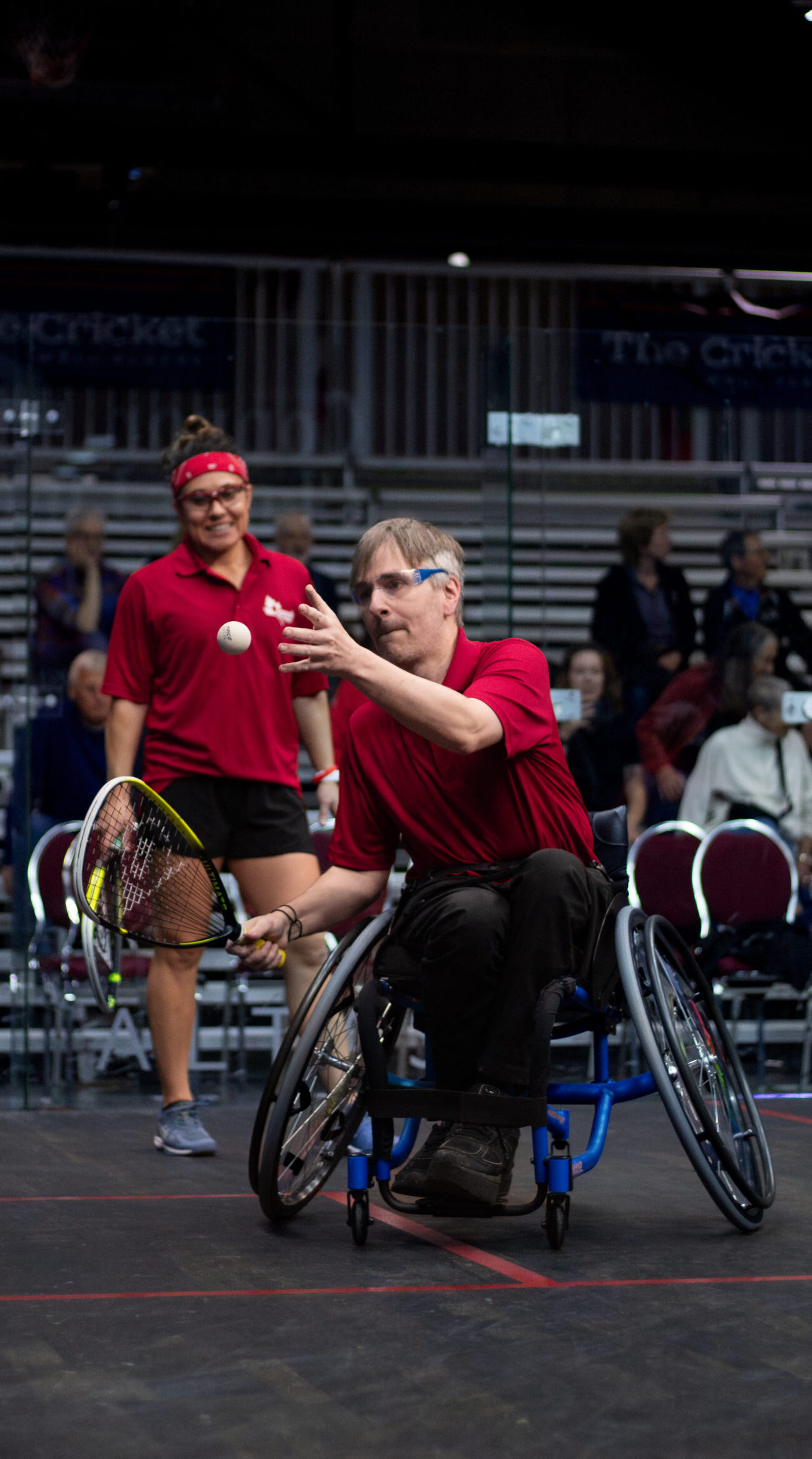 5.3 Présenter une démonstration de squash en fauteuil roulant sur le court vitré lors de deux événements de Squash Canada.